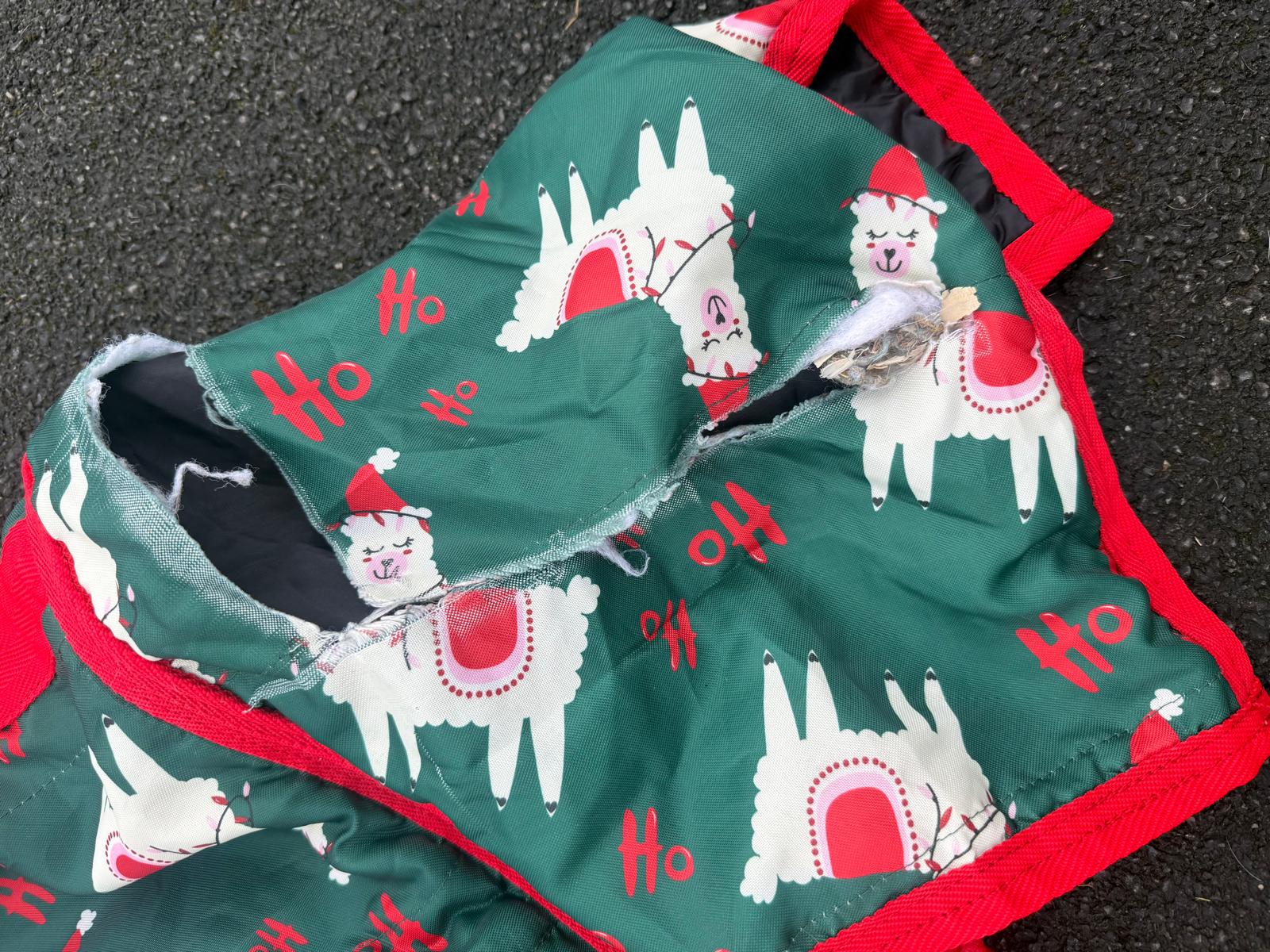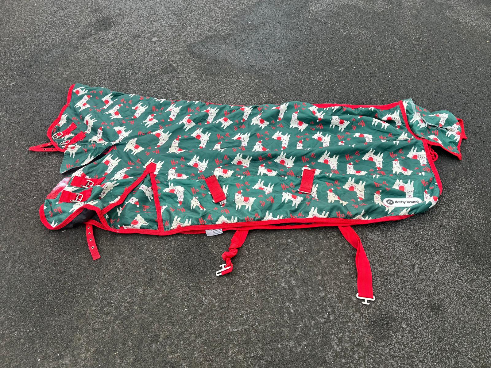 Derby House Christmas print rug. Lovely quality clean and ready to use rip to tail flap but would be easily patched. All buckles and straps are in great working order.