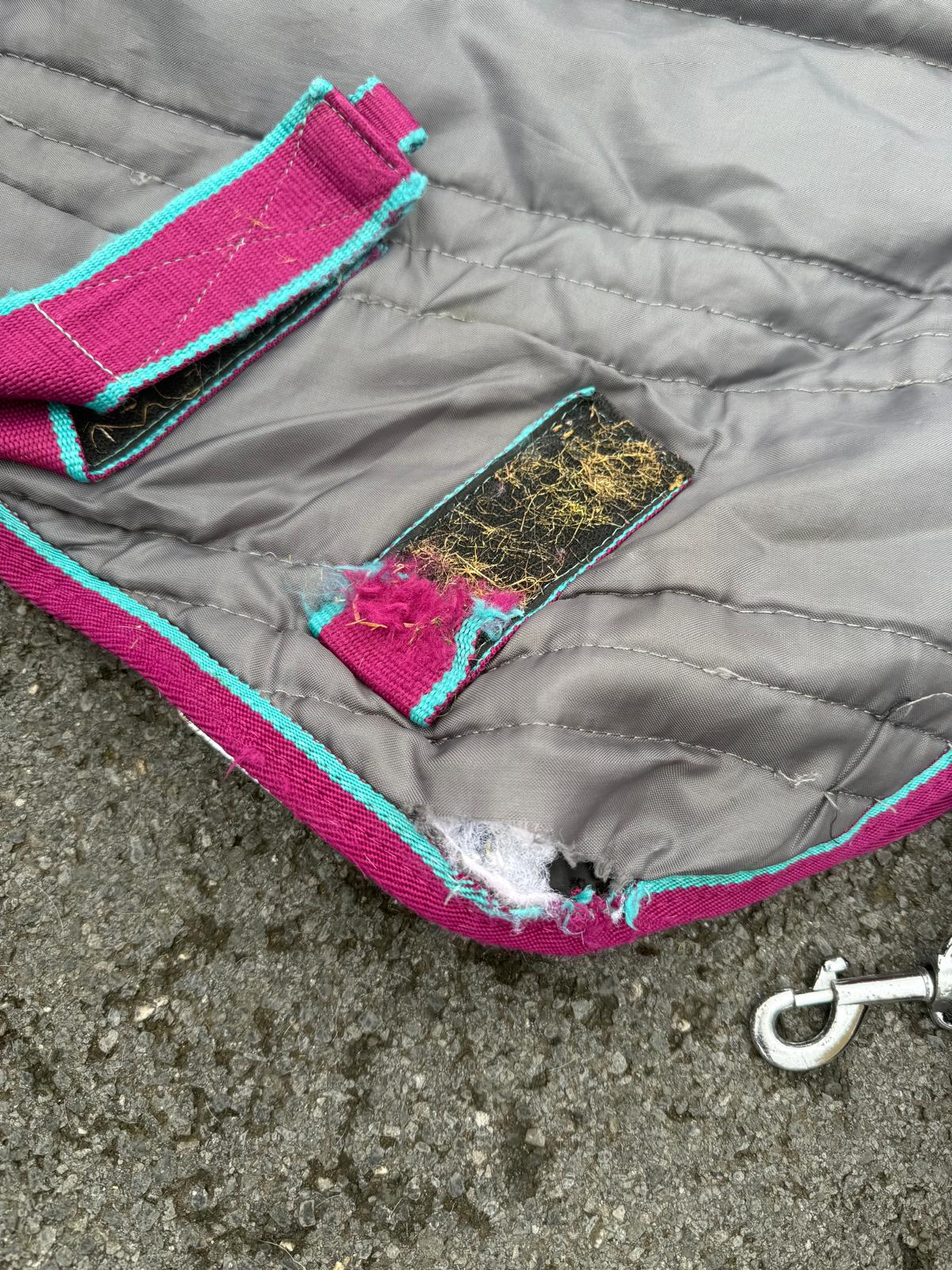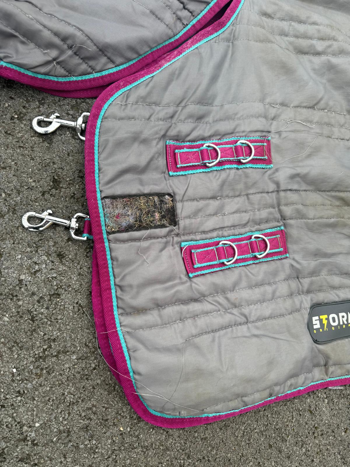 Unsure on exact weight but is a lovely stable combo. Does have one strap missing to the neck whick does not effect use. And some damage to binding by tail flap but is clean to the underside, some expected stains but will be washed again before posting.