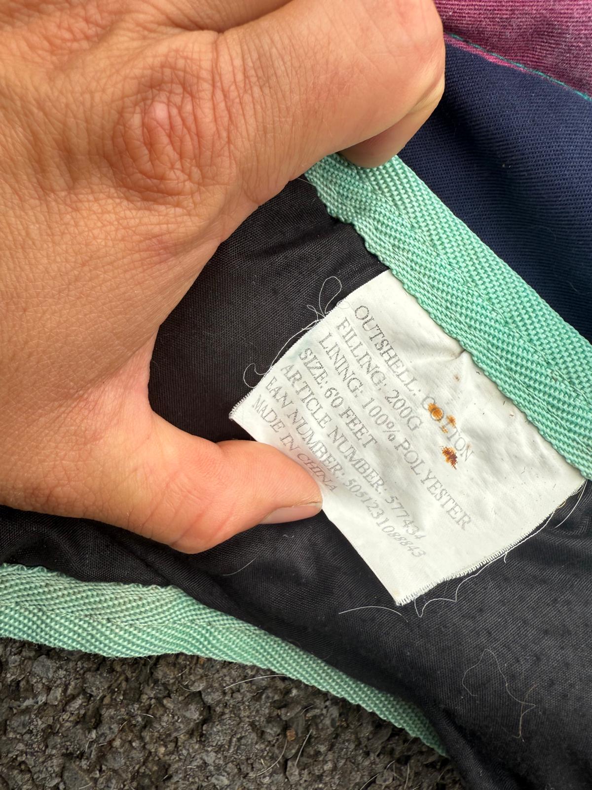 A lovely fitting liner with thick padded wither and easy attachments. One clip needs replacing but due to cut away design they rarely slip. Some staining but will be washed before sending,