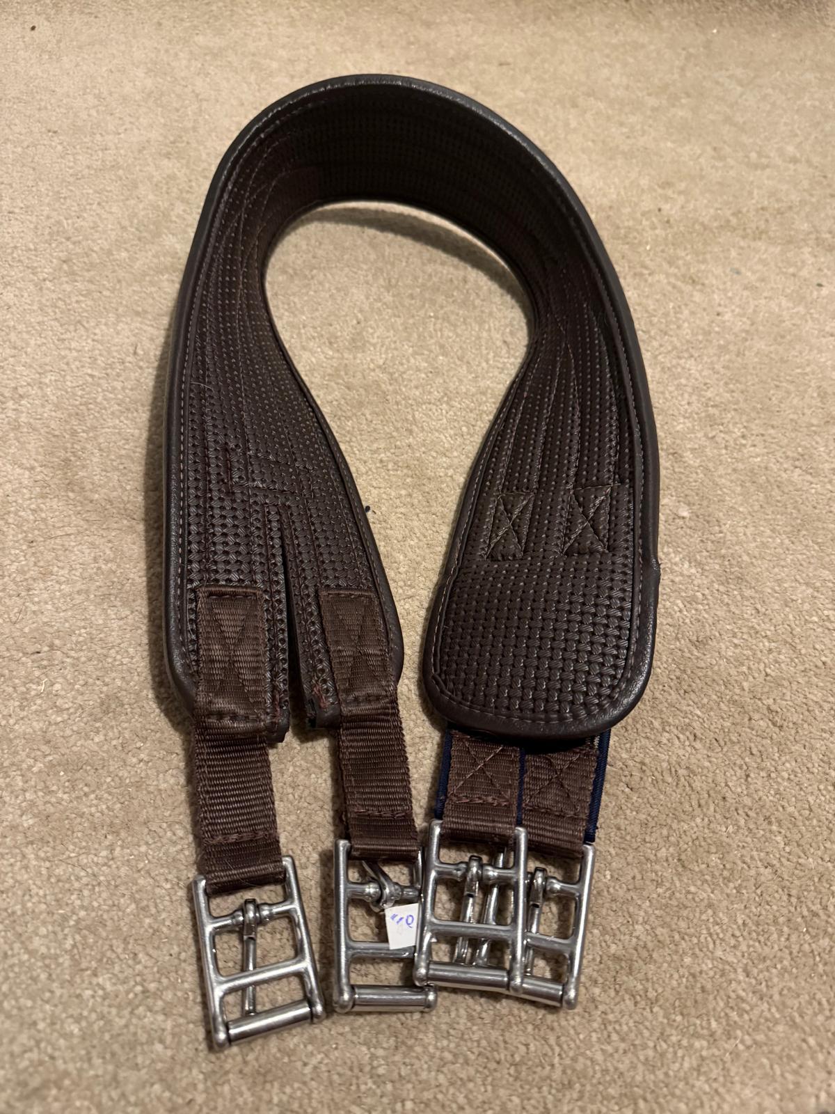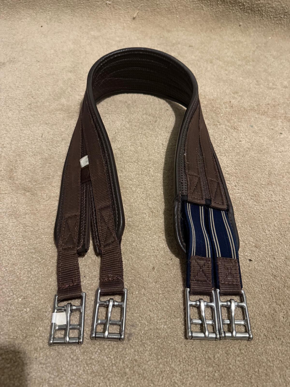Unbranded brown girth, possibly shires with design. Elastic to one end, great like new condition ready to post.