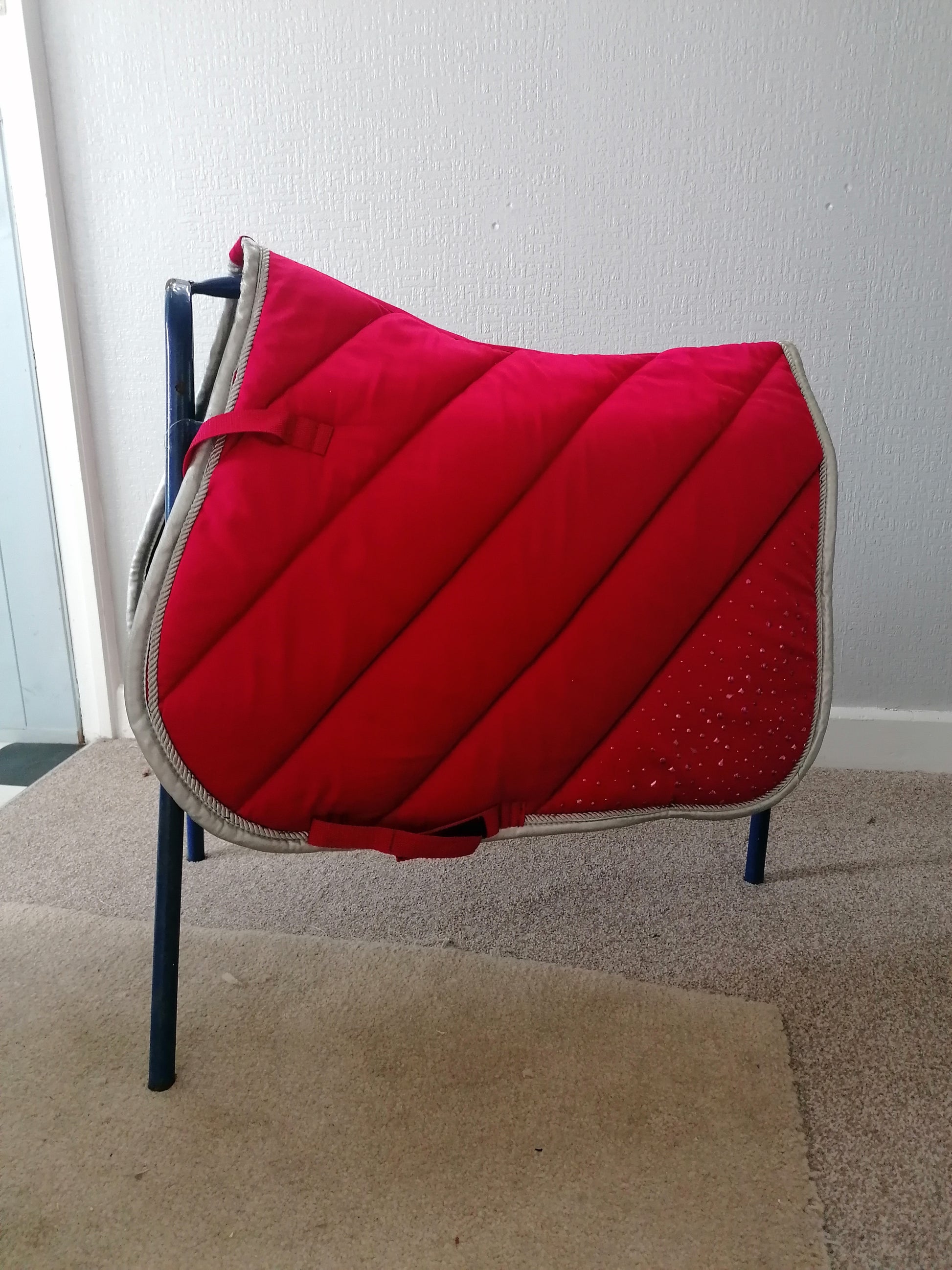 GP full very lovely saddle pad, gem detailing to fab condition other then some signs of wear to silver coating of the binding has been washed but appear to have a stain to the underside. May come out in a hotter wash but due to detailing have not tried.