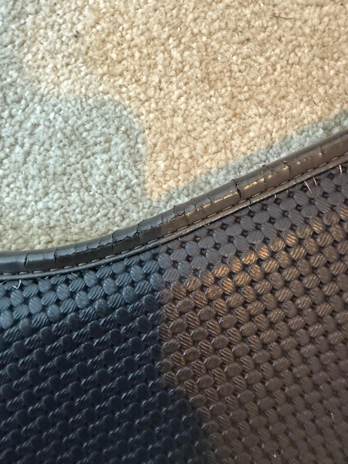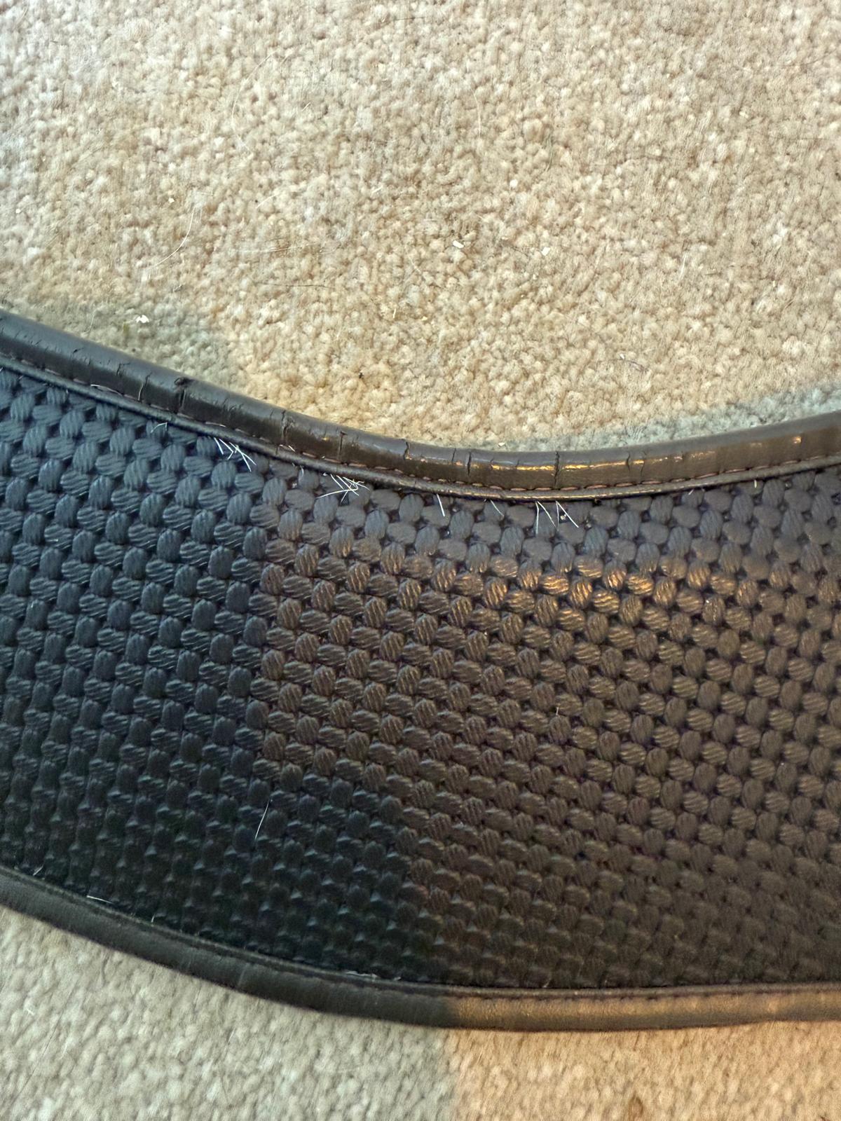 A lovely light weight brown girth that is shaped to aid comfort. Has some cracks to the edge as shown but is clean and ready to post.