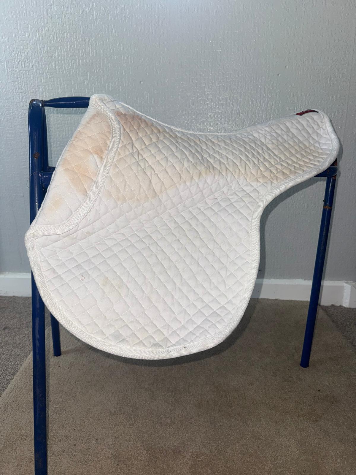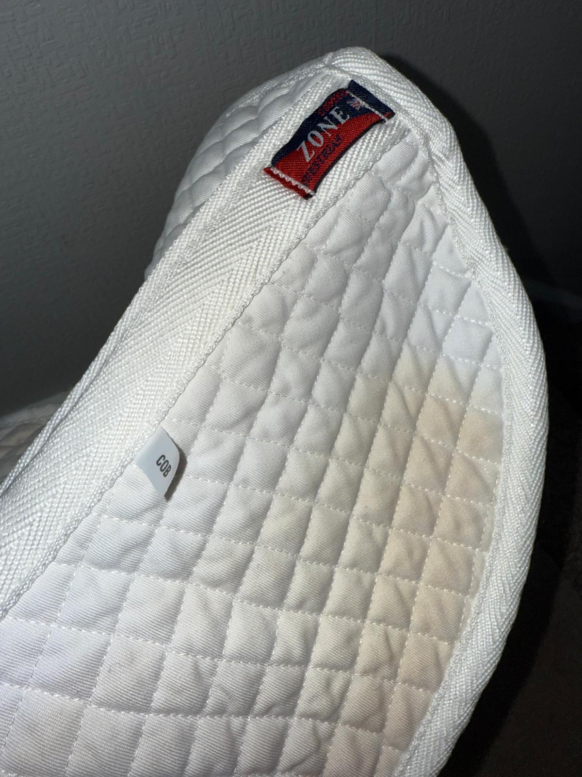 Comfort Zone Numnah Cob size numnah some staining to both sides where saddle sits. Has been washed and features and anti slip design to shoulders to help keep saddle in place.