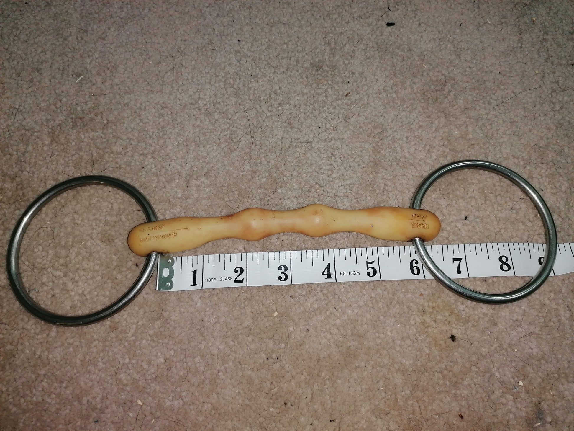 Loose ring bit, very good condition no signs of chewing, genuine happy mouth so quality guaranteed. Clean and disinfected