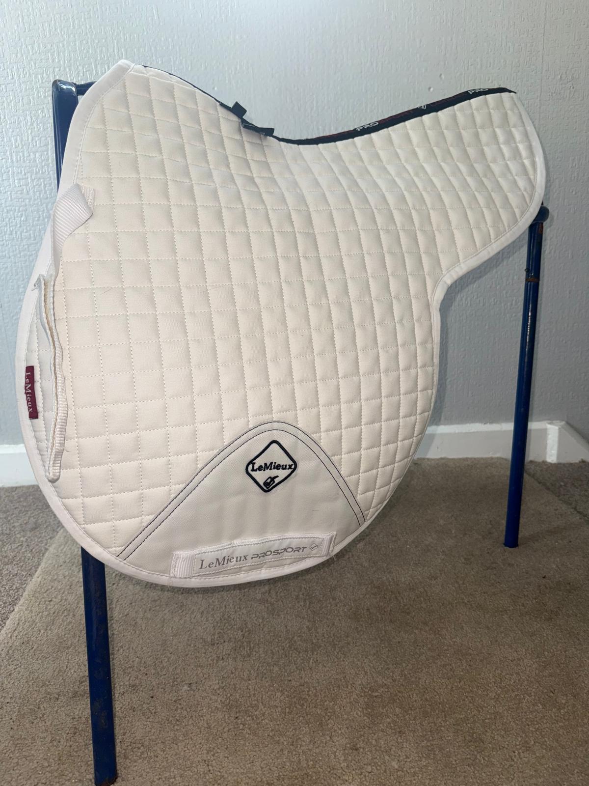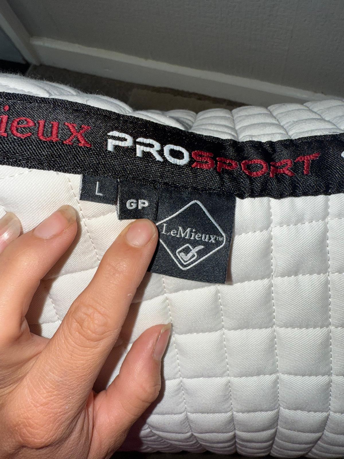 Le Mieux GP Numnah Large GP Numnah a smart quality item with reinforced girth area and soft bamboo lining to aid wicking and comfort while in use. Has been wash so minor discolouring to the underside but not noticeable.