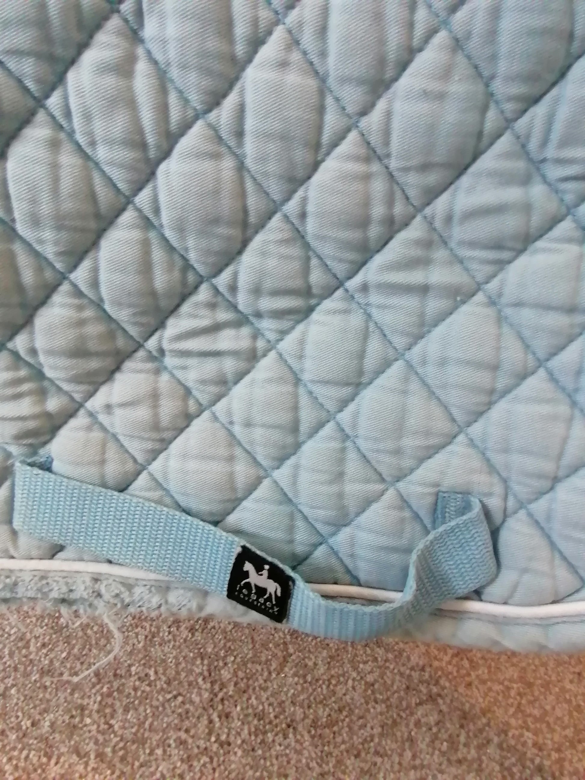 Full size well used thin GP pad, lovely pale blue colour some stains not covered by saddle to both sides, and has wear to the girth area both sides also. Clean and ready to go.