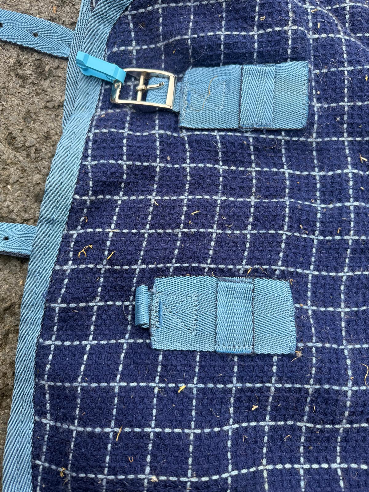 A good cooler rug to wick away sweat clean and ready to use is missing a buckle from the chest but does not effect use. Is clean and ready to use.