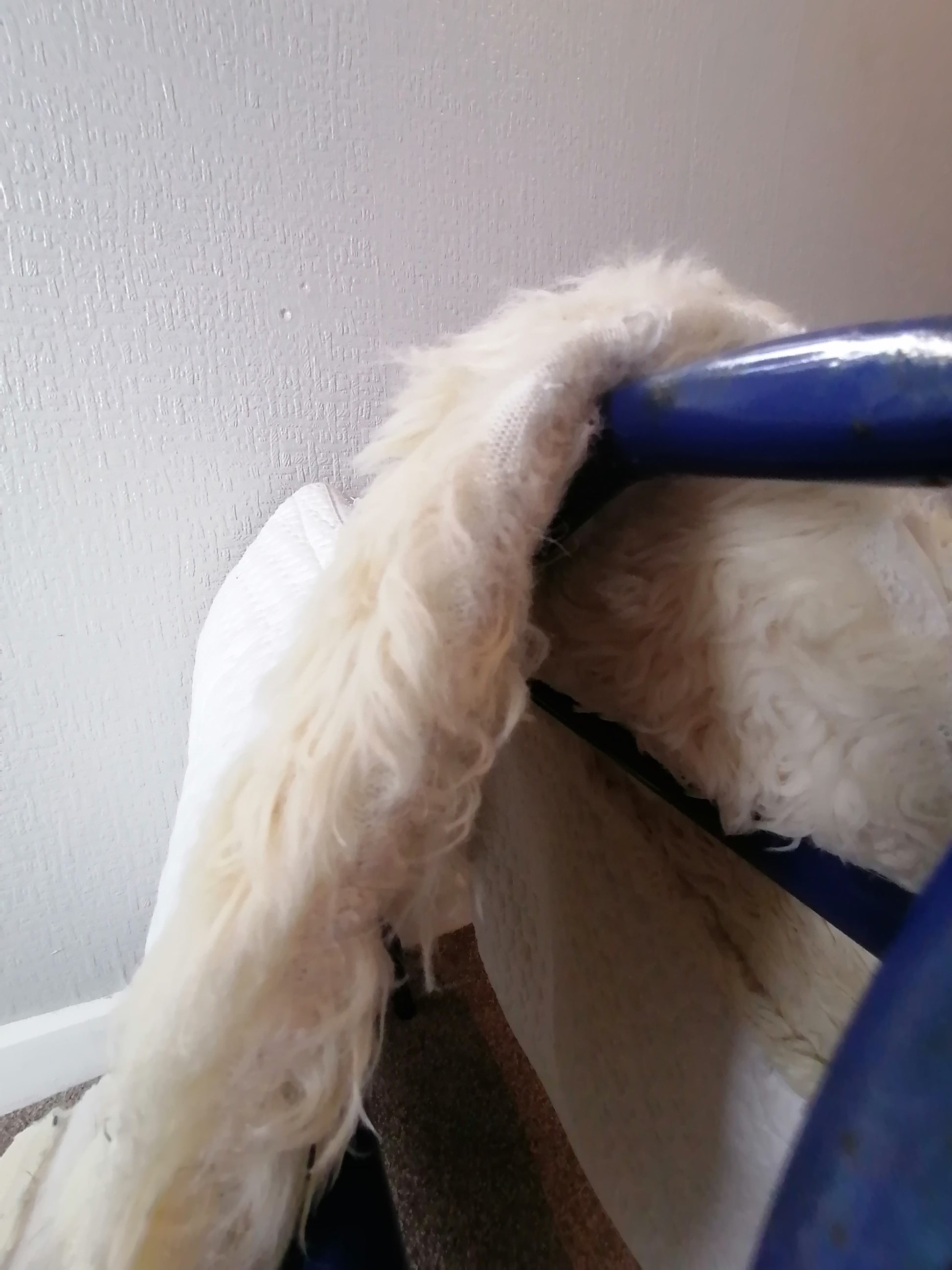 Full size saddle pad with top half having quality sheepskin. No marks or stains and has washed well. A very smart pad with the only wear by the wither where the sheepskin has started to come away from the binding. Would not effect use as wear is right on the edge but could be repaired easily.