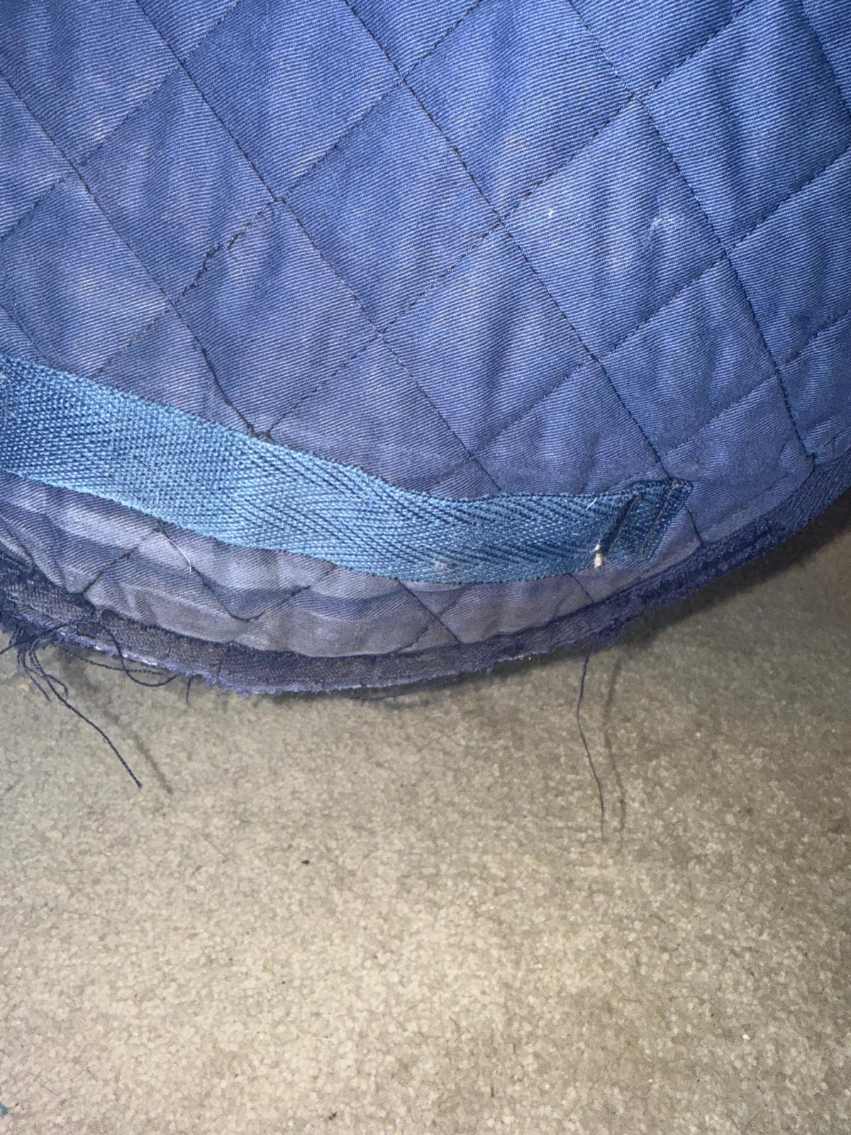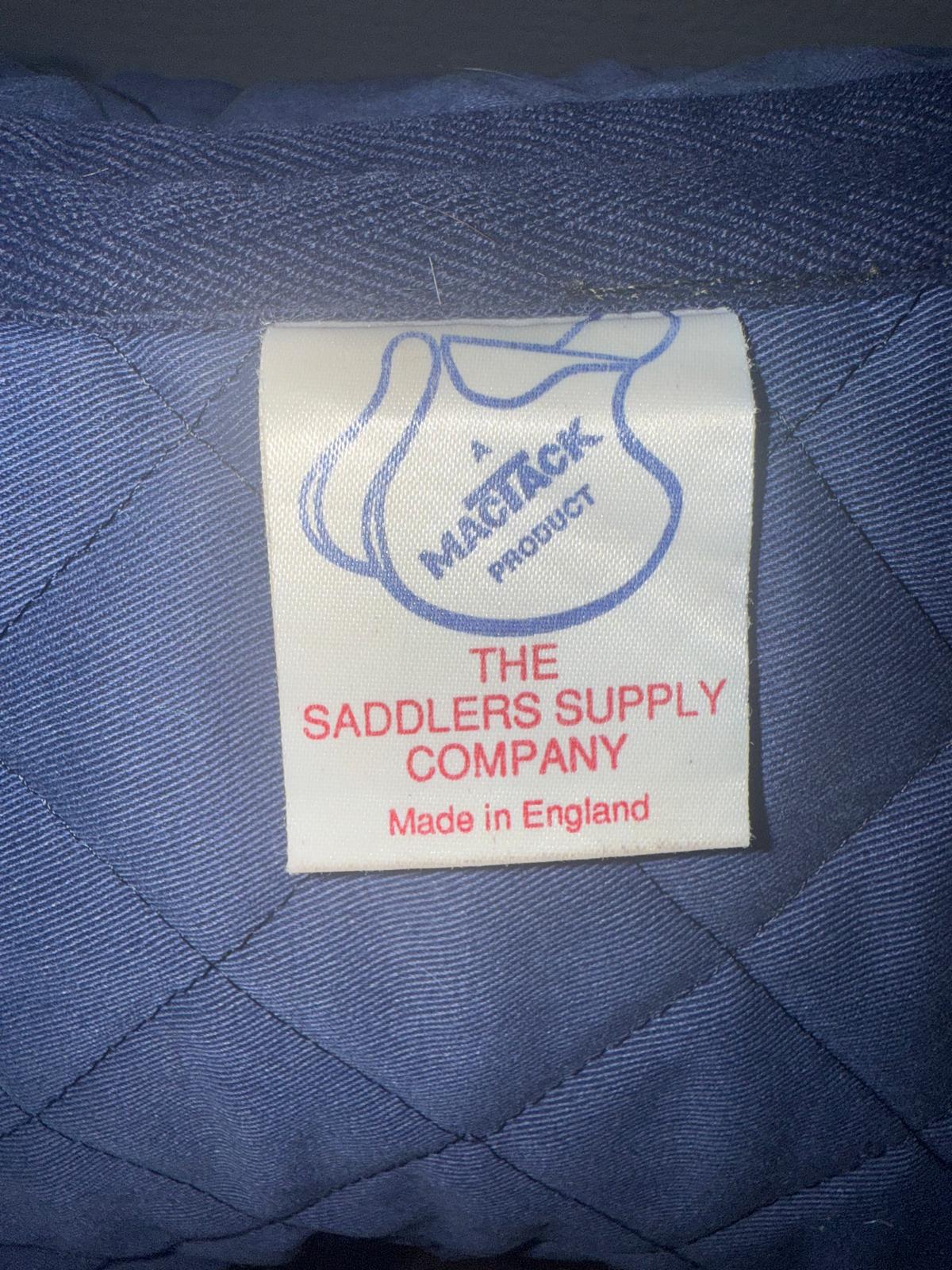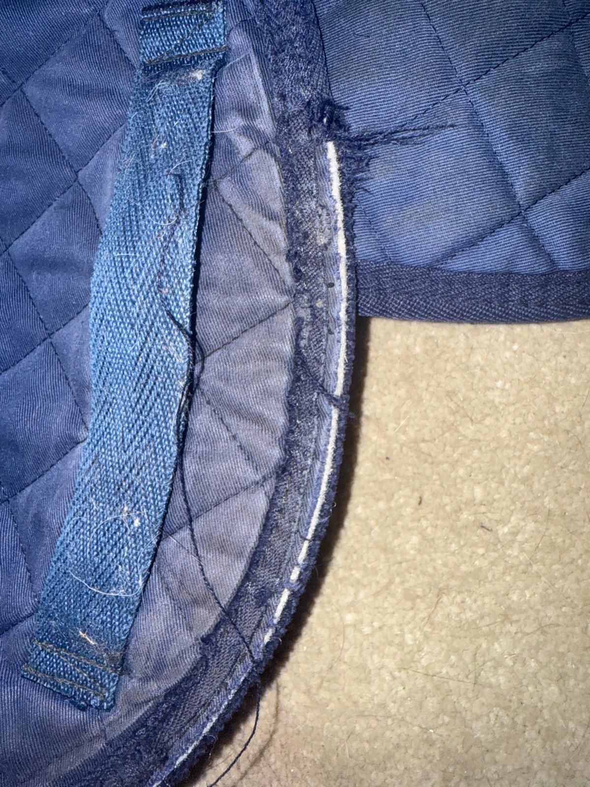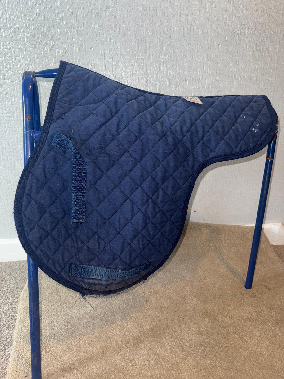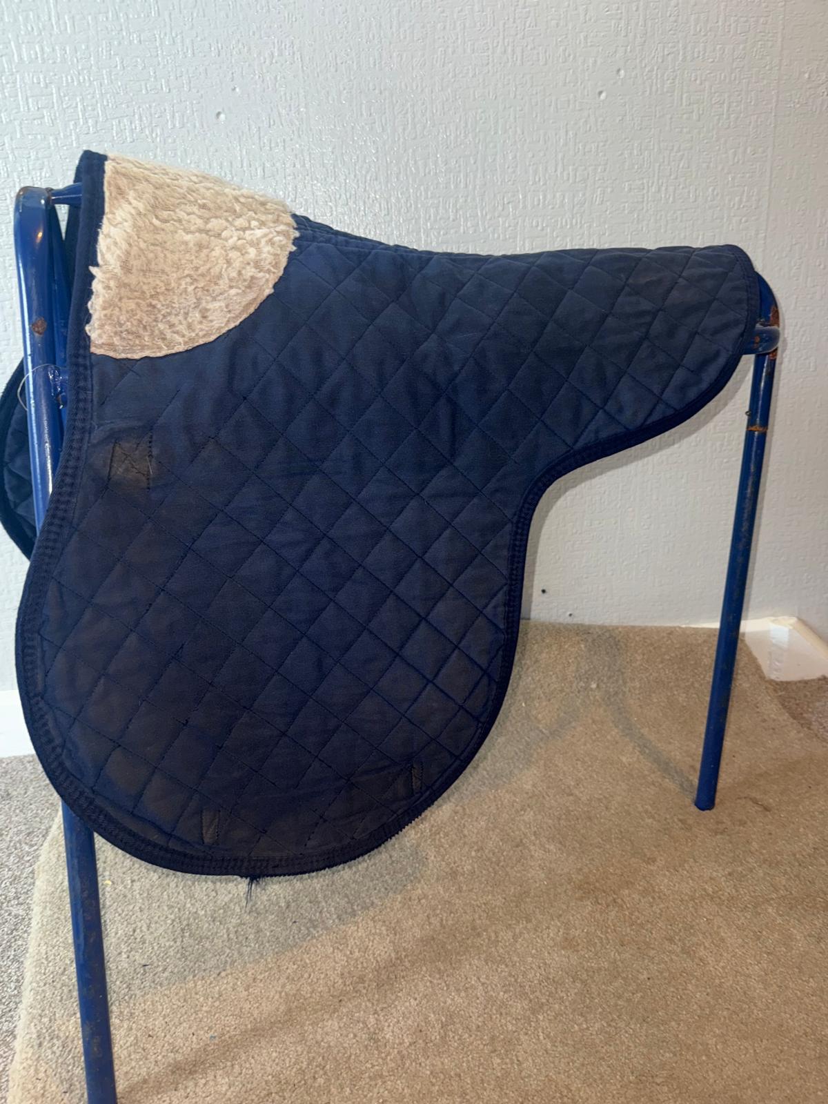 No size but measures as a full size pad, Sheepskin wither, with thin cotton for easy cleaning after use. Has some wear to both sides where the girth sits but does not effect use. Clean and ready to post.