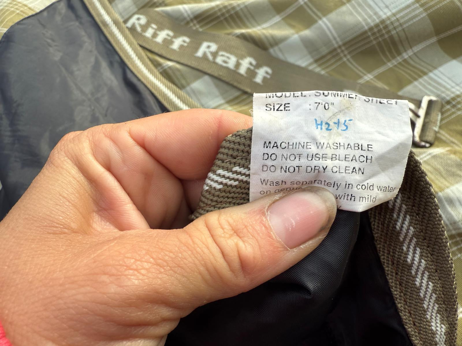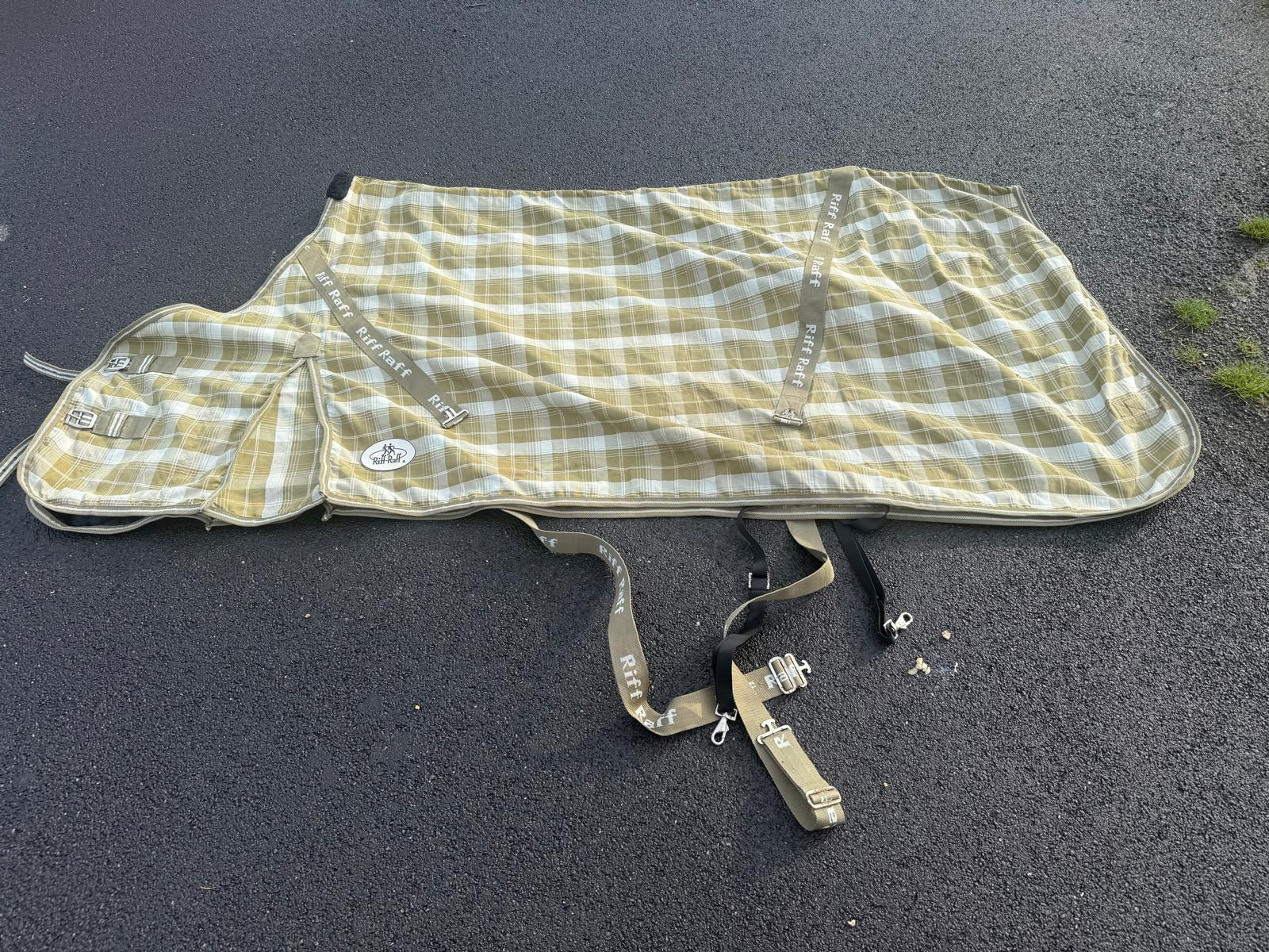 In like new condition rug minimal rust to buckles which are all functioning is in clean and ready to use condition. Very versatile rug great for shows, traveling or in the stable. Quality material no signs of wear and tear.