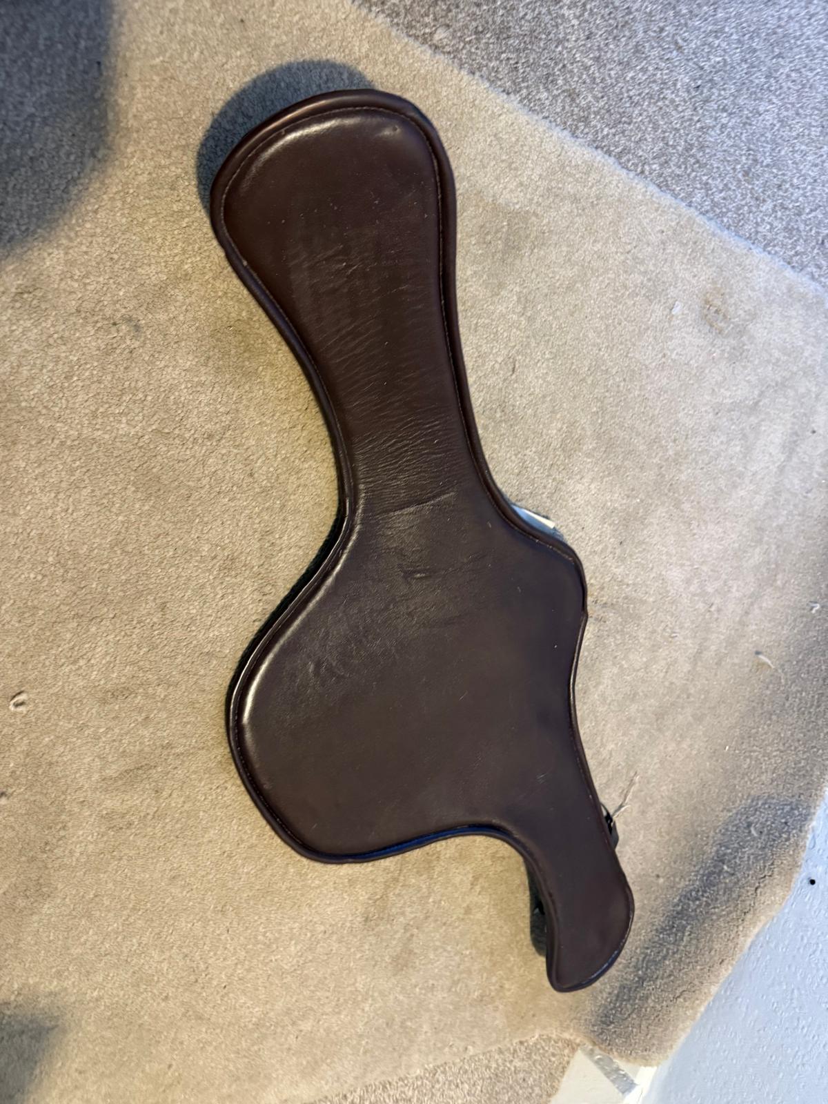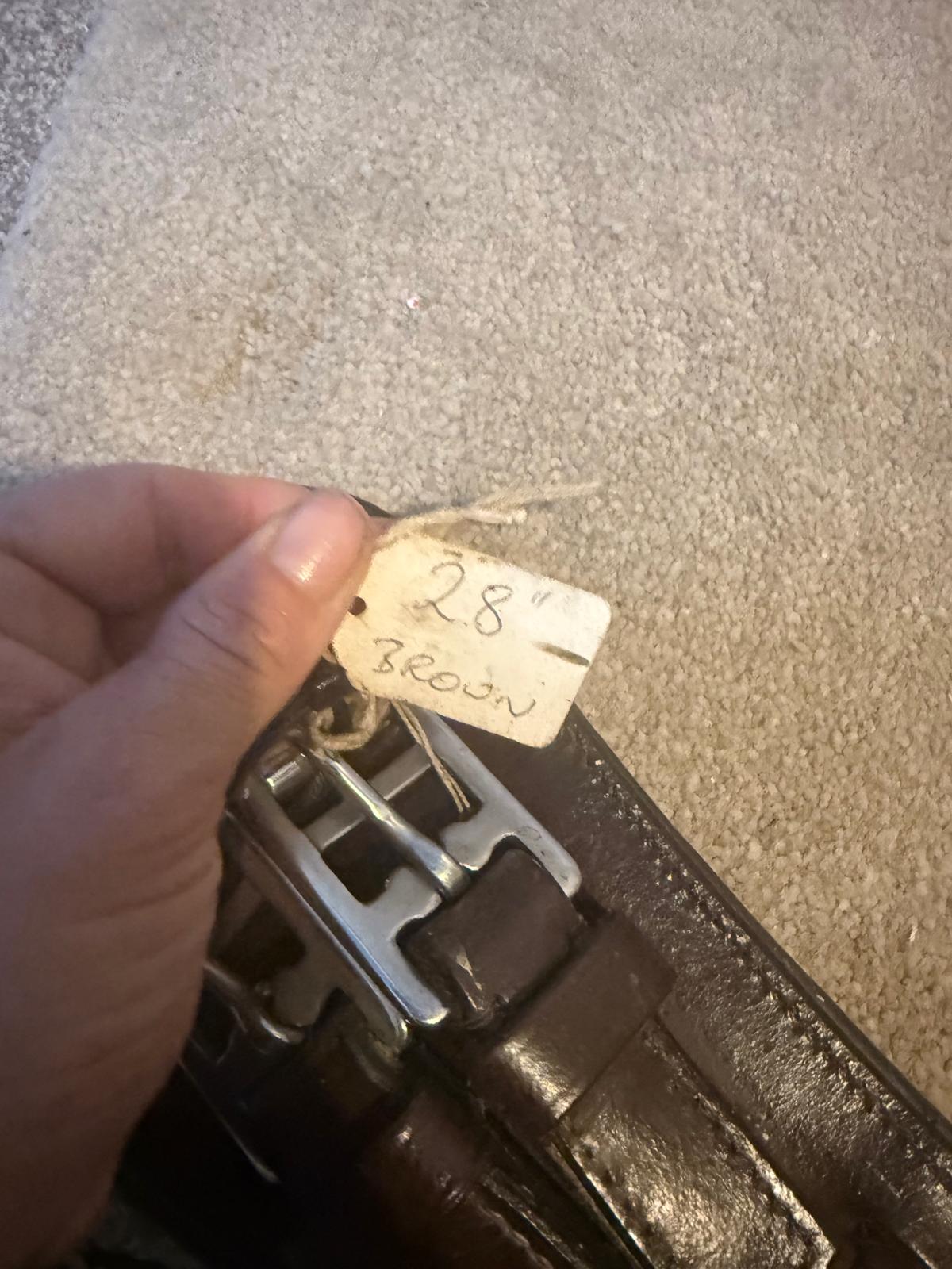 New with tags tan leather girth. Some scuffs from storage but has been cleaned and conditioned ready to use. Elastic to both ends.