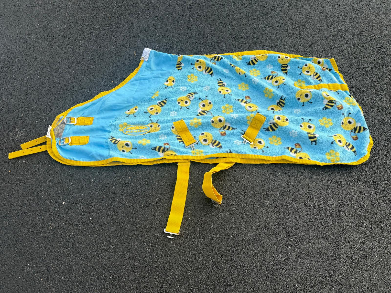 Very lovely fleece in great condition has had a slight repair to rear but has been washed and ready to go. Some loose threads but all straps and surcingles in good condition apart from some surface rust.