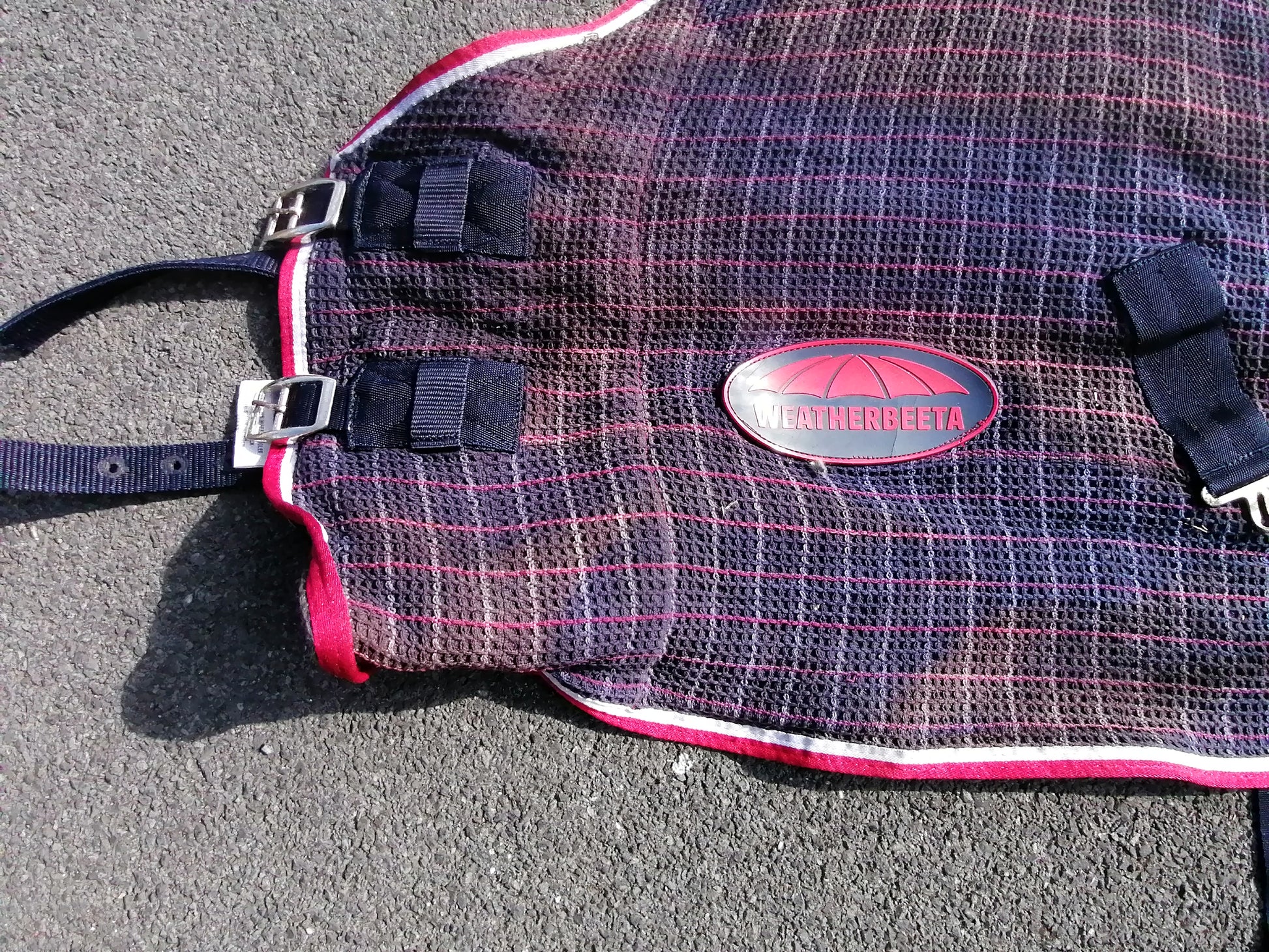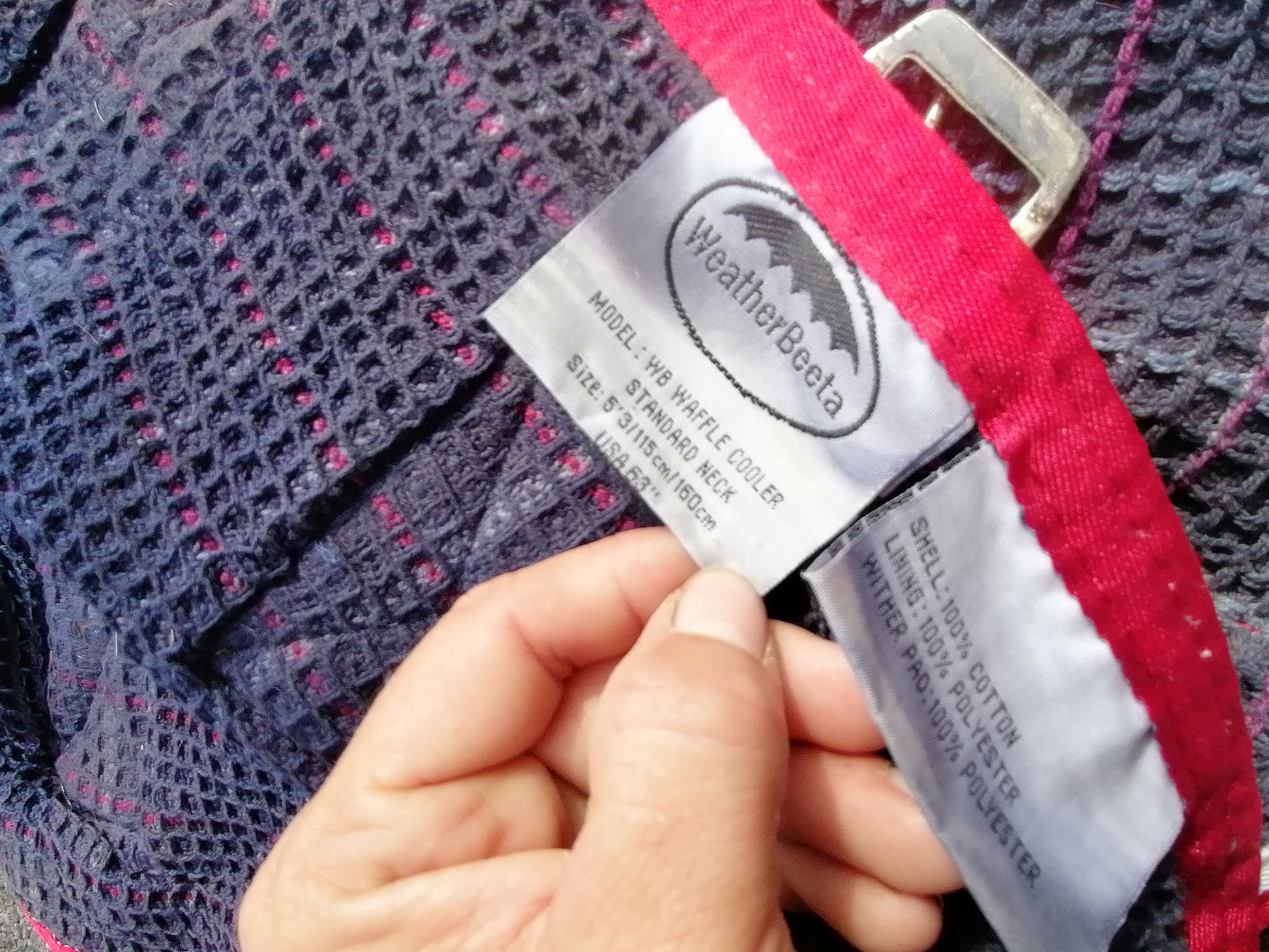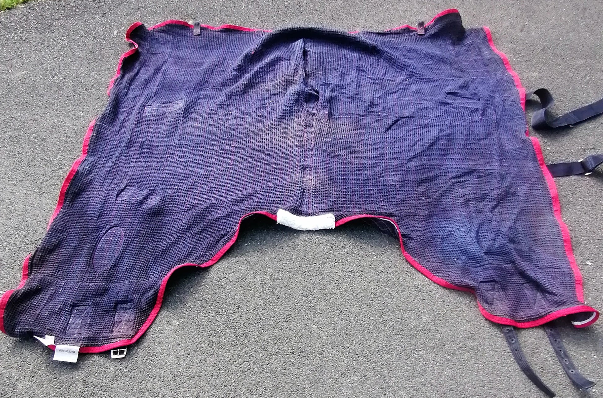 Sun fading to both sides, but all fittings work as they should does not have a tail or leg straps. Does have some loose threads that don’t show up in the pictures but is otherwise fit for purpose and ready to use.