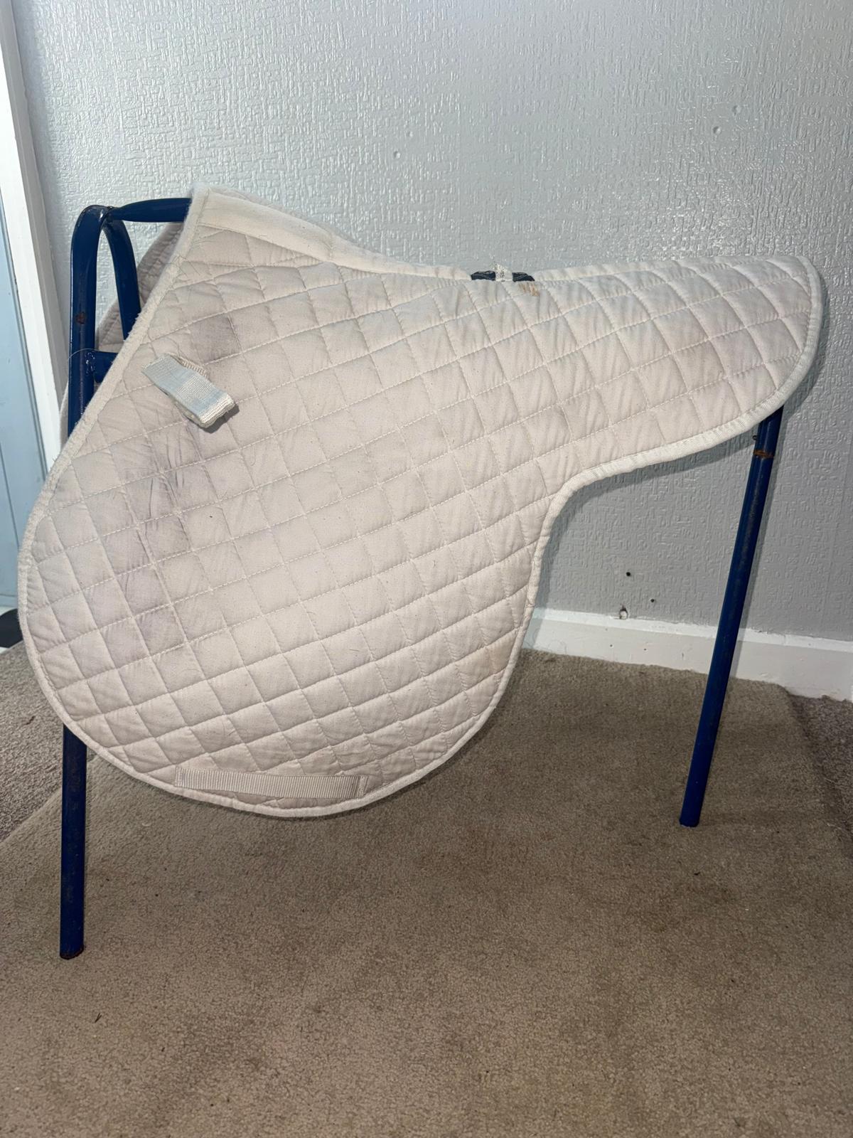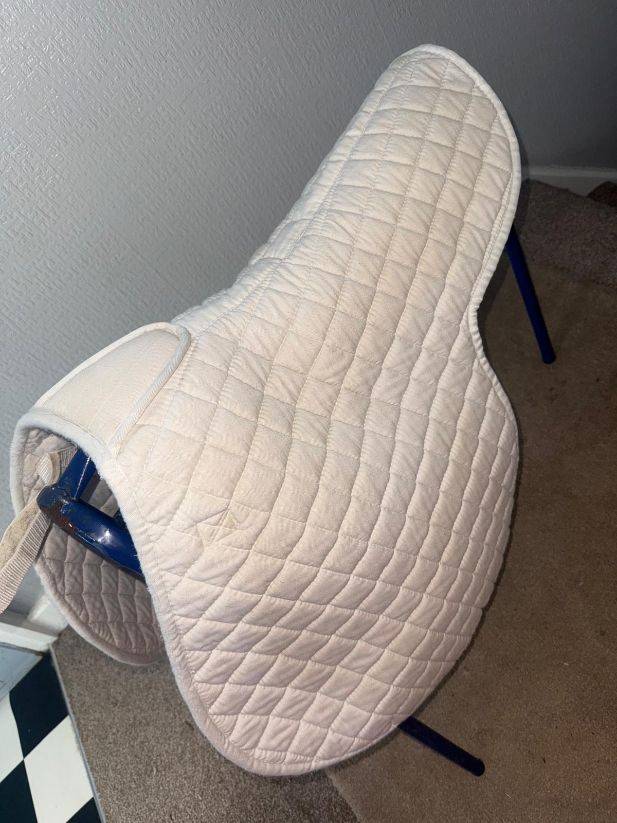 Weatherbeeta Numnah Well used white numnah great for everyday size cob with some stains to the sides but due to shape will be mainly covered by the saddle. Features a padded wither has been washed and ready to post.